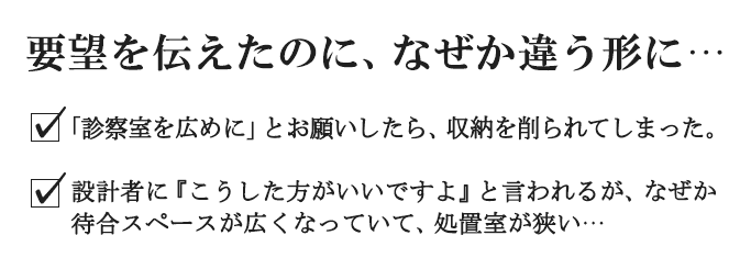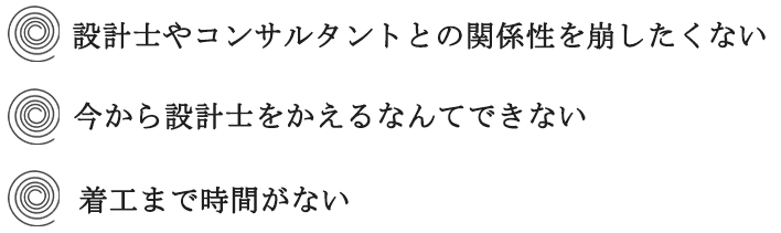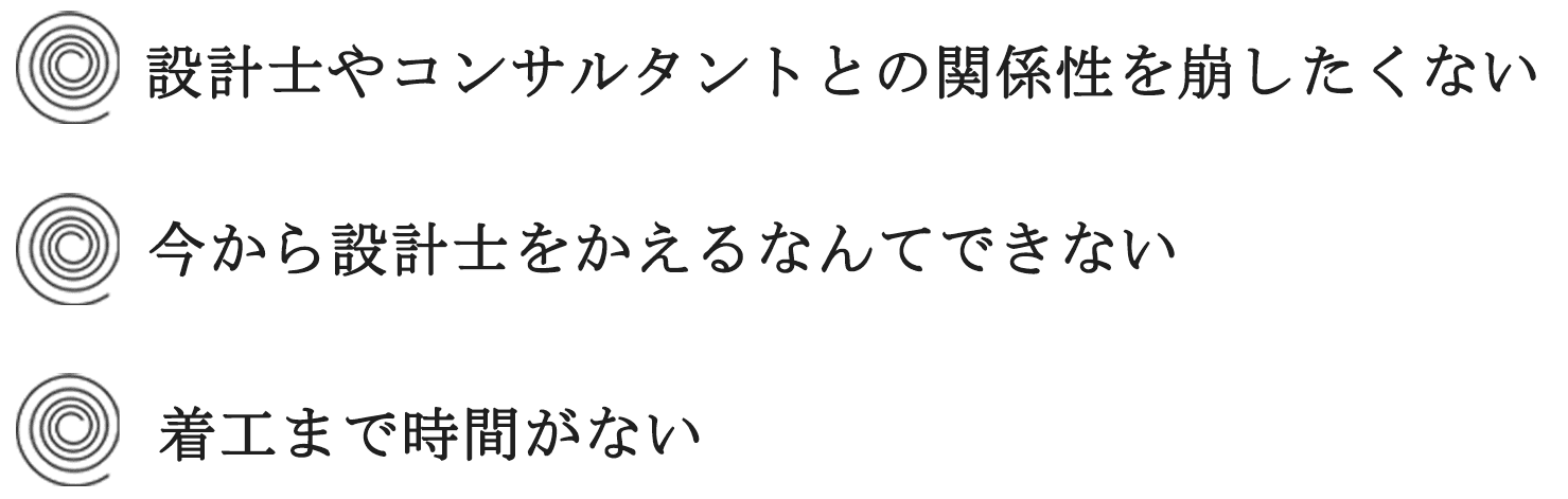 設計者と目指す方向が合わなかったり、何回直しても意図したものと異なる図面が提出されるケースは、何度もご相談ください。